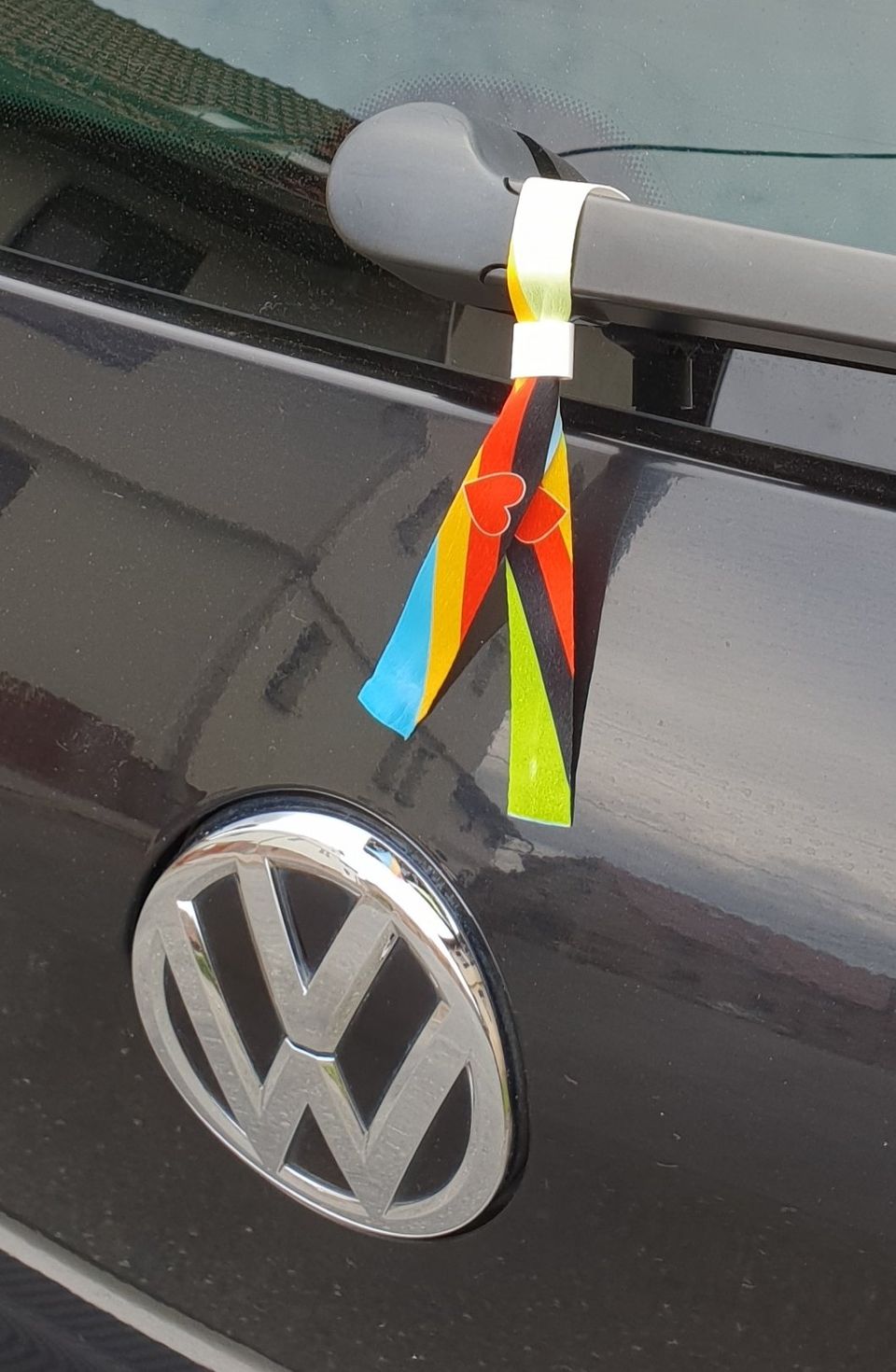 Das Bändchen gibt es einmal als Armbändchen, oder eben als zweite Version für das Auto (Antenne oder Heckscheibenwischer), dem Motorrad, oder Fahrrad, oder wo auch immer sonst Ihr es anbringen wollt, um zu zeigen, dass Ihr dabei seid.